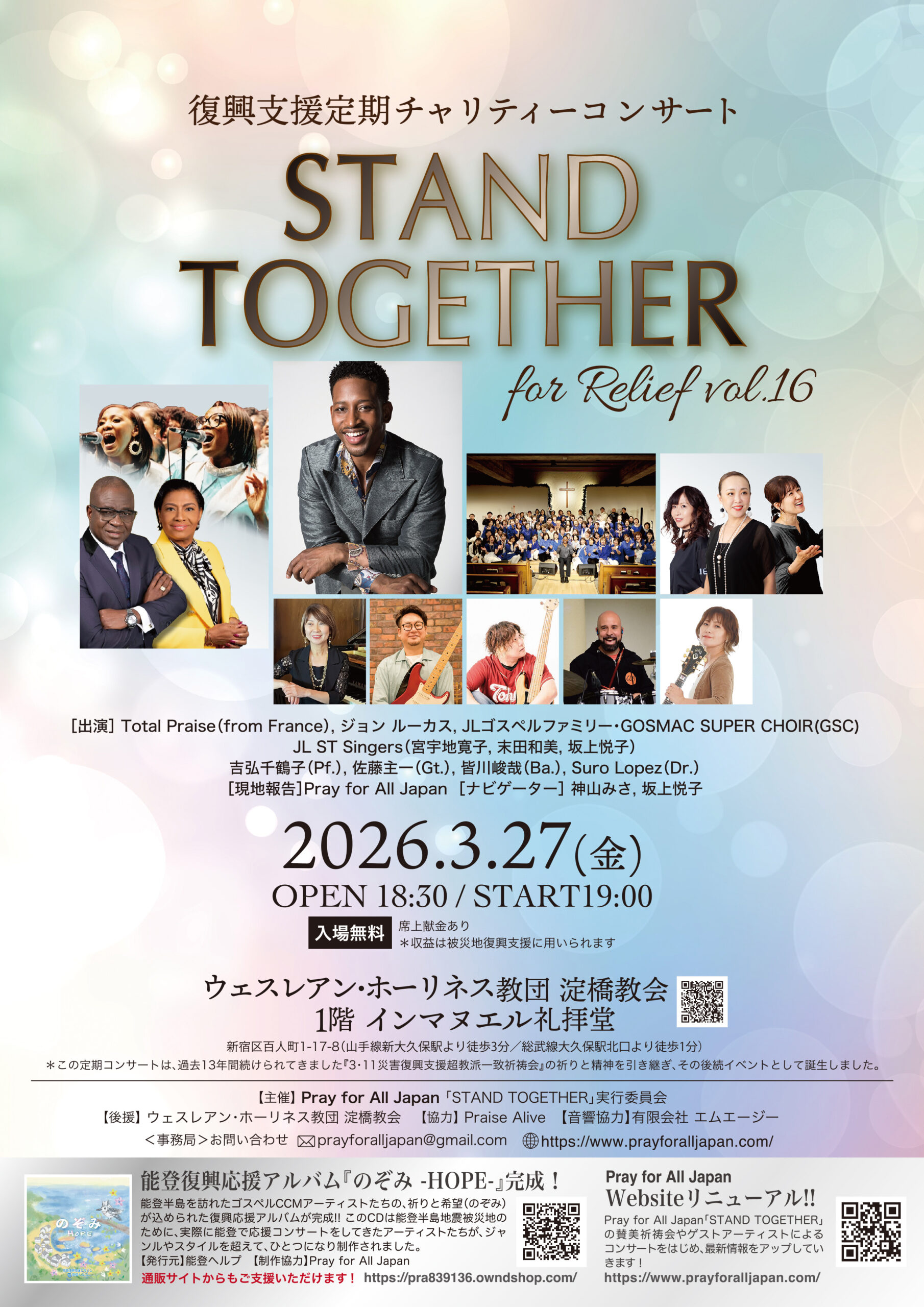 〈お問い合わせ〉Mail:prayforalljapan@gmail.com